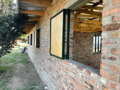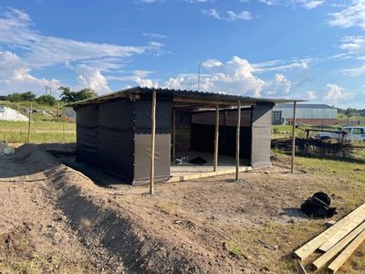 We designed the shelter with a concrete cast floor boxed in with timber. Treated upright poles were used to create the main frame of the structure. 80% shade-net could be wrapped round outer uprights creating a cost efficient "wall" to provide shelter against wind and rain. An IBR roof was affixed to the top of the upright pole frame with an overhang on the back and front.